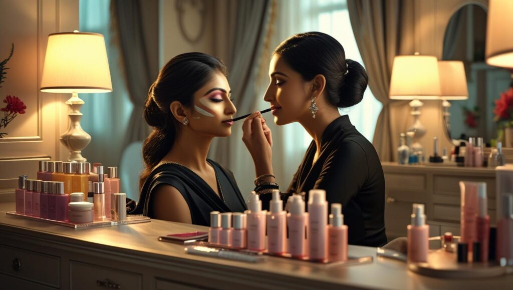 उदाहरण: Threading, Facial, Hair Styling, Bridal Makeup
